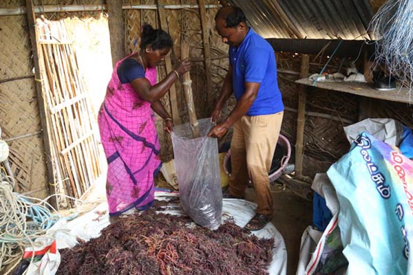 The cultivated and collected marine algae is then purchased from the cultivators at pre-agreed prices and taken to the Aquagri facility in Manamadurai for processing. At the facility, we employ proprietary technology that is developed by the Research and Development team that makes Sagarika a market-ready product. Sagarika is the first of its kind biostimulant that adheres to global standards, and is made available to the farmers in highly concentrated form and at the most economical price. It’s the most concentrated and lowest priced product in the Indian market. Active collaboration between our team with CSMCRI ensures constant upgradation or the product.